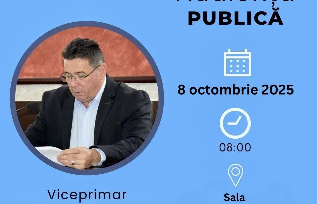 Săptămâna viitoare continuă audiențele susținute de conducerea Municipalității: miercuri, 8 octombrie, viceprimarul Eusebiu Vețeleanu va fi la dispoziţia râmnicenilor care au de rezolvat probleme ce sunt de competența administraţiei locale în cadrul unei sesiuni de audienţe programată de la ora 8:00, în Sala “George Țărnea”.